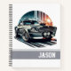Ce carnet est présenté avec un imprimé d'art automobile sport. L'exemple de nom personnalisé indiqué Customise cet élément et change le nom en votre nom. Image sous licence