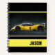 Ce carnet est montré avec une photo de voiture de sport. L'exemple de nom personnalisé indiqué Customise cet élément et change le nom en votre nom. Image sous licence pixabay