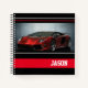 Ce carnet est montré avec une photo de voiture de sport imprimer un Lamborghini rouge. L'exemple de nom personnalisé indiqué Customise cet élément et change le nom en votre nom. Image sous licence