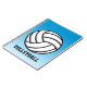 Belle boule de volley-ball en caricature noir et blanc sur un arrière - plan en dégradé bleu et une zone de texte personnalisable qui se lit maintenant "volley-ball".