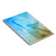 Bloc-notes pour volley-ball féminin sportif avec une scène conceptuelle d'un jeu de volley-ball à la plage, avec le texte personnalisé qui dit : "sable, surf et ciel ... et volleyball" - les graphismes mélangés de volleyball comprennent un volleyball et un volleyball féminin silhouetté sautant à un filet de volleyball superposé sur un arrière - plan en dégradé de couleur turquoise, blanche et brune clair qui représente un ciel bleu clair, le surf océanique et une plage de sable - personnaliser avec son monogramme et son nom - par katz_d_zynes