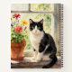 Carnet Watercolor Cat and Flowers on Window Sill