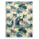Notebook in a watercolor-style illustration of three black-and-white cats surrounded by lush, vibrant green foliage, with purple and pink flowers. The composition is dreamy and nature-infused, blending realism with fantasy.