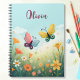 Ce carnet personnalisé est l'illustration charmante et fantaisiste d'un jardin de papillons pastel, où deux papillons colorés flottent parmi des fleurs sauvages doux. L'arrière - plan rêveur dispose d'une subtile lessive de fleurs, créant une atmosphère apaisante et enchanteresse.