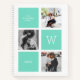 Carnet en spirale monogramme avec un collage photo vert menthe et blanc avec de la place pour trois de vos propres photos. Ajoutez votre nom de famille, votre initiale et l'année !