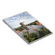 Notebook with a wind mill and a canal with pink dahlia flowers in a landscape in Holland.