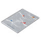 Jolie scène hivernale avec des branches blanches, des oiseaux colorés et une neige tombante. Superbe paysage hivernal avec des oiseaux en jaune, orange, bleu et rouge. Personnalisez en changeant le texte.