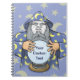 Vieux sorcier avec cape bleue et boule de cristal magique. Utilisez la photo du visage pour customiser. Texte personnalisé.