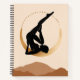 Le yoga silhouette légèrement texturé s'étire sur une fausse feuille regardez la lune de croissant doré au-dessus de la montagne neutre en dessous. Donnez à votre yoga salle de gym ou journal de méditation un nouveau style zen. Les options de la page intérieure comprennent la règle large, la règle collégiale, le graphique, l'esquisse, la liste de contrôle ou la puce et vous pouvez également choisir la couleur spirale.