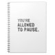 "A minimalist design featuring the empowering phrase 'YOU'RE ALLOWED TO PAUSE.' in a bold, distressed black font against a light grey background. The design serves as a gentle reminder to take a break, rest, and prioritize self-care amidst life's demands. It promotes mindfulness and mental well-being."