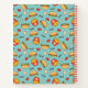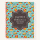Cahier de recettes spirales avec un motif de cheeseburgers, frites, coeurs et étoiles.