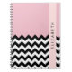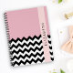 Carnet Zigzag noir et blanc, Chevron, rose, Votre nom