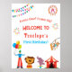 Faites un pas vers l'Affiche de bienvenue d'anniversaire du Carnaval Circus, le plus amusant et le plus mignon ! Cette décoration festive rend la journée spéciale de votre enfant inoubliable. Un signe de bienvenue pour une célébration magique d'anniversaire !