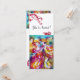 Invitation d'art raffiné colorée, élégante et vibrante. Danseuses romantiques de carnaval : figures de danse artistiques, fantaisistes et expressives, belle femme blonde en costume à plumes scintillantes dansant avec un jeune Arlequin avec des ornements rouges bordeaux au verso de la carte. Peinture à l'aquarelle dans des couleurs vives rose, fuchsia, vert, rouge, bleu, jaune, avec des paillettes dorées inspirées de la Comédie de l'Art (Commedia dell'arte) et du Carnaval de Venise. C'est également un beau design pour les faire-part de mariage, les programmes, les cartes "save the date", les anniversaires de mariage, les réunions, les fiançailles romantiques, les douches de mariée, les occasions spéciales, les fêtes de fin d'année, le bal masqué de Mardi Gras, les f