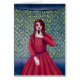 Cette belle carte de Noël présente une femme qui chante dans une robe rouge avec des lumières de cycle de vie derrière elle. L'oeuvre a été entièrement colorée par des marqueurs copiques, à côté de quelques crayons colorés ici et là.