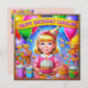 Une douce fille, célébrant l'anniversaire de Caroline. Les salutations sur la carte sont "Joyeux Anniversaire Caroline". Sur le dos de la carte se trouve une petite version de l'image avant, et beaucoup de place pour écrire un message. Fabriqué avec l'aide d'AI Bing.