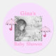 Stickers ronds avec couverture cd Carousel Dreams, couleur gris, avec design parapluie rose, graphique sous licence Graphics Factory. De bonnes faveurs Baby showers ! Personnalisable !