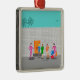 Vous êtes invité à l'événement social de l'année avec cette Atomique Palm Springs Stewardess Party céramique design ornement. Joignez-vous à ces trois hôtesses de l'air vintages qui rivalisent avec les compagnies aériennes pour accéder à leur kitschy 1960's breezy block hotel. L'un des clochards fabuleusement accrochés dans un uniforme rose chaud rétro tient la porte orange tandis que l'autre lutte avec les bagages des femmes. Des palmiers turquoises s'élancent dans l'arrière - plan d'un ciel turquoise improbable alors qu'un jetliner vole au-dessus. Ce design vous fera dire : "Sur votre marque, jet set, allez !"