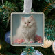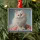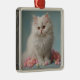 Carré Argenté Beau Ornement de Chat Fluffy Blanc