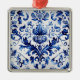 Carré Argenté Bleu et blanc Delft style ornement floral motif