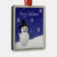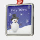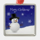 Carré Argenté Bleu Snowman scène d'hiver Ornement en céramique