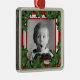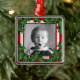 Premium, ornement photo de famille carré. Saint Noël avec rouge et blanc dans l'arrière - plan, encadre le visage d'un enfant ou une image de toute la famille pour faire un ornement de gardien de vacances. Un look argenté avec un ruban rouge pour pendre.