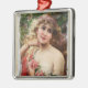 Carré Argenté Femme victorienne avec ornement rose roses