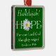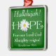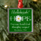 Ce ornement de Noël ou de Pâques personnalisé a des écritures personnalisables du Livre des Révélations 19:6 qui dit, "Hallelujah! Car notre Seigneur Dieu Tout-Puissant règne !" Vous pouvez modifier la couleur verte de l'arrière - plan vous-même en utilisant la fonction personnaliser, ou téléphoner au service à la clientèle pour obtenir de l'aide. Le mot Hope est en blanc avec une tête de fleur de marguerite Shasta blanche et jaune à la place du "O". Vous pouvez afficher votre foi chrétienne forte sur votre arbre de Noël, ou l'accrocher n'importe où dans votre maison toute l'année. Il ferait aussi un beau cadeau de Noël pour un ami ou un pasteur à l'église.
