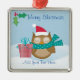 Carré Argenté Joyeux ornement en céramique de hibou de Noël