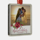 Magnifique ornement photo moderne "marié & joyeux" de noël, avec un design saint et poinsettia. Parfait pour votre anniversaire mariage, ou pour vos premiers noël ! Facile de modifier les champs de texte affichés et d'ajouter votre propre photo. Objets correspondants disponibles à acheter dans cette collection, tels que les cartes de voeux photo et les étiquettes de adresse. Veuillez visiter ma boutique pour acheter les articles correspondants.