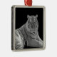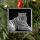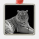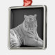 Beau ornement en métal carré, avec une photo en noir et blanc d'un tigre blanc. Idéal sur votre sapin de Noël ou comme d'autres usages décoratifs autour de la maison, comme une traction de ventilateur ou accroché au mur. Fait un grand cadeau pour quiconque aime l'art.