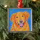Cet ornement présente un joyeux récupérateur d'or. J'ai créé le portrait original en aquarelle, encre et crayon couleur sur papier aquarelle.
