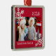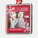 Carré Argenté Photo personnalisée Ornement rouge avec flocons de
