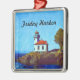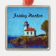 Cet ornement encadré de carrés présente le phare de Lime Kiln à Friday Harbour, situé sur l'île de San Juan dans l'État de Washington. Le beau rouge profond ou la coupula contraste avec le blanc et le bleu joli ci-dessous. La lumière de la chaux Kiln est une aide à la navigation fonctionnelle située sur Lime Kiln Point surplombant la baie de Dead Man, sur le côté ouest de l'île de San Juan. Cet ornement a le phare et "Friday Harbour" sur le devant avec un dossier solide. D'autres styles d'ornements sont disponibles avec la même scène.