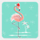 Design élégant avec une touche rétro, avec un flamant rose festif portant un chapeau de Père Noël rouge, des étoiles et des palmiers décorés de billes dressées contre un arrière - plan d'aqua. Un design personnalisable pour personnaliser avec votre propre texte, images et idées. Une image d'art numérique originale créée par Quirky Chic.