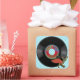 Un autocollant carré qui correspond à notre invitation "Bop 'Til You Drop" avec une image d'un enregistrement les années 50 Rock & Roll 45 t/min et une image vintage de danseurs Jitterbug sur un arrière - plan de pois bleu-sur-bleu. Le titre du disque est "Bop ‘Til You Drop (At My Party)". Voir invitation correspondante, étiquette de faveur, étiquette et papier d'emballage. Voir l'ensemble de la collection Nifty les années 50 Sticker en INVITATION | Section Stickers & Étiquettes.