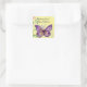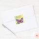 Une jolie photo vintage d'un papillon violet avec des feuilles et des fleurs sur un arrière - plan jaune pâle est présentée sur cet autocollant carré d'anniversaire. Avec le message "Wishing You A Happy Birthday" (Vous souhaitez un joyeux anniversaire), ce serait très bien d'utiliser sur les mailings d'anniversaire spéciaux, les albums, la décoration et plus encore !