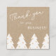 Ce carte de visite d'appréciation du client dispose d'une phrase "Merci" en lettres modernes et de mignons arbres de Noël avec le coeur pour les ornements. et l'écriture blanche sur un carte de visite carré. Le texte est facile à modifier sur cette carte pour en faire votre propre. Vous pouvez ajuster le message au besoin pour ajouter des informations sur votre produit, offrir une remise spéciale aux clients répétés, ou demander un avis sur votre site Web ou les médias sociaux. Le design fonctionne bien pour le marketing hivernal. Vous pouvez emballer cette carte dans des commandes achetées en ligne pour express votre gratitude et engager avec vos clients.