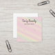 Carte de visite Carré d'affichage des rayures rose-jaune à oreille. Un design chic et tendance avec des éléments de trou d'oreille réglables et du texte en option. Personnalisez l'avant de la carte avec votre nom et votre titre personnalisés. L'envers avec les coordonnées de votre entreprise. Option de modification supplémentaire sur la page du produit.