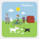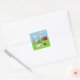 Carré Cartoon mignonne Animaux & Boy Riding Vélo Sticker