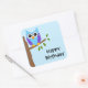 Carré Chouette mignonne joyeux Sticker d'anniversaire