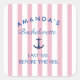 "Préparez-vous à adopter le thème et à célébrer la future mariée avec style grâce à cet autocollant « Last Sail Before The Veil » ! Avec des rayures roses et blanches amusantes et des lettres bleu marine gras, cet autocollant est parfait pour ajouter une touche de charme nautique à votre enterrement de vie de jeune fille. Collez-le sur des bouteilles d'eau, des cadeaux de fête, ou tout objet qui a besoin d'un peu de plaisir supplémentaire ! Un excellent souvenir pour la tribu de la mariée pour se souvenir de cette célébration spéciale."