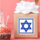 autocollant carré avec l'image d'une étoile bleue profonde de David et une double bordure bleue profonde sur le blanc. Voir collant rond correspondant, confetti, étiquette et papier d'emballage. Consultez la collection Hanoukka Sticker dans sa totalité sous la catégorie CARDS & STICKERS dans la section VACANCES.