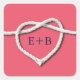 Une corde blanche attachée dans un coeur orne cet autocollant monogrammé sur un arrière - plan corallien, ce qui le rend parfait pour le mariage nautique ou balnéaire. Faites défiler vers le bas pour voir le reste de la collection de mariages, et si des articles supplémentaires sont nécessaires, contactez-nous à prettyfancyinvites@gmail.com avec votre demande.