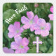 Carré Fleurs roses et croix ont Sticker de foi