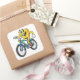 Carré Funny Cartoon Bicycle Riding Character Sticker