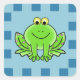 Mignon sticker à damiers bleu avec une grenouille souriante et heureuse au centre.