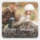 Célébrez les vacances avec cet autocollant chic avec votre photo avec script moderne et chute de neige.