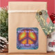 Un autocollant carré pour sauvegarder la date et faire correspondre notre invitation "La Paix doit venir" avec l'image d'un symbole de paix violet teint cravate sur violet, orange, jaune et vert teint cravate. Customisez avec la date de votre fête. Voir invitation correspondante, enveloppes, sac de faveur, ballotin, étiquette de faveur, sacs cadeaux, étiquette et papier d'emballage. Voir l'ensemble de la collection Psychedelic Sticker des années 60 dans les INVITATIONS | Section Stickers & Étiquettes. Ce produit n'est pas associé d'affilié au titulaire du droit d'auteur d'origine.
