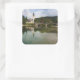 Photo autocollant d'un paysage de lac Bohinj avec eau calme et reflet de l'église Saint Jean Baptiste et le pont de pierre à Ribcev Laz, Slovénie, au début de la saison d'automne.